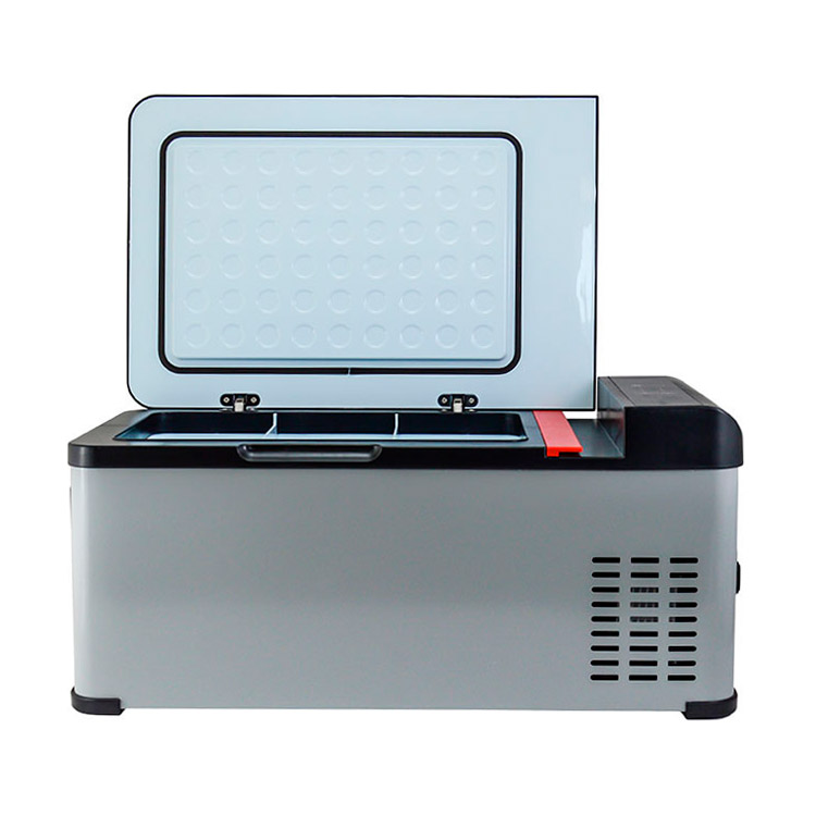 Libhof Q-18 — компактный компрессорный автомобильный холодильник, самая маленькая модель во всех линейках. Надёжная металлическая скоба на корпусе предназначена для фиксации на пассажирском сиденье с помощью ремней безопасности. Аналогичное крепление имеется у более объёмных моделей — Q-22 и Q-28.