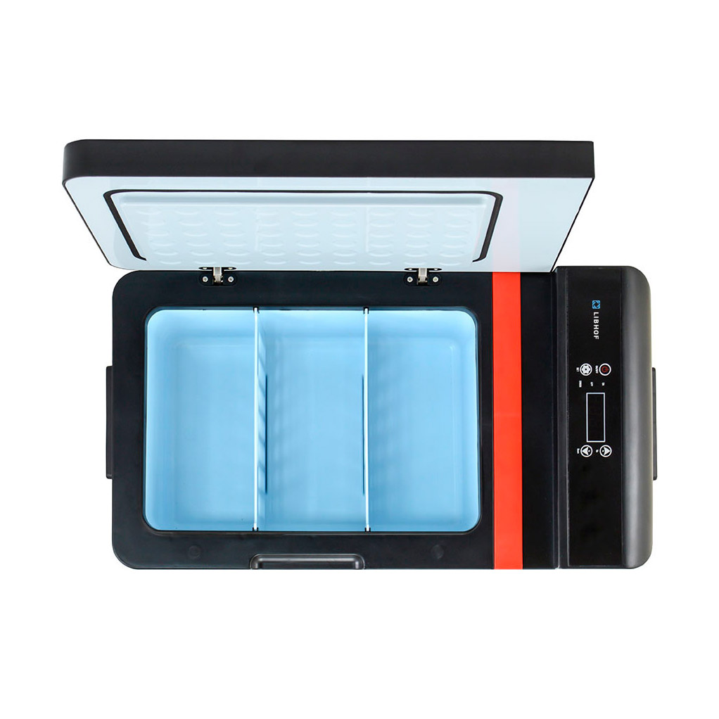 Как и все компрессорные холодильники Libhof, Q-18 имеет сенсорную панель управления, память настроек, трёхуровневую защиту от разряда аккумулятора. Диапазон настраиваемых температур от -25°C до +10°C,  потребление энергии до 40 Ватт. Толстый изотермический слой стенок позволяет длительное время поддерживать низкую температуру внутри корпуса. Холодильник способен стабильно работать при наклонах до 45°.